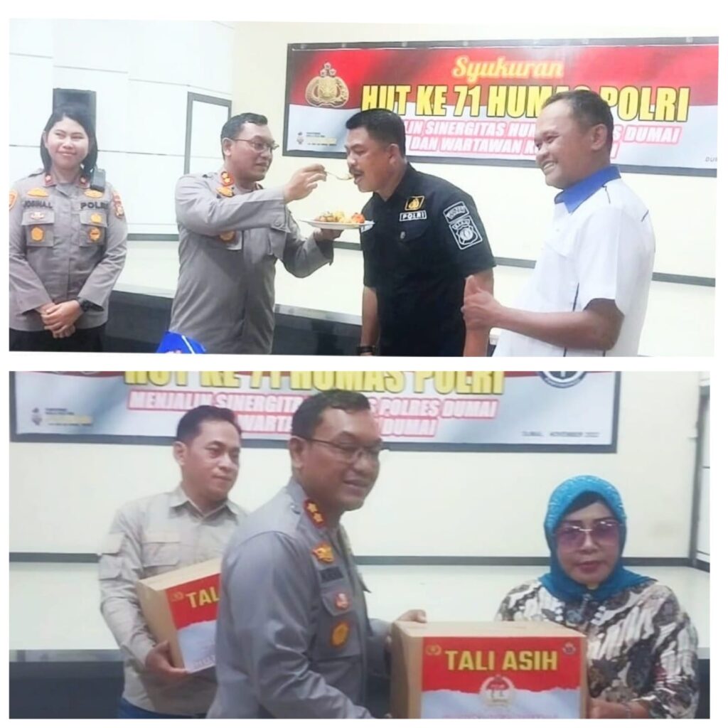 Dalam rangka Hari Ulang Tahun Humas Polri ke-71 Tahun, Kapolres Dumai AKBP Nurhadi Ismanto, S.H, S.I.K, beserta jajaran gelar Syukuran bersama seluruh Insan Pers yang dilaksanakan di Gedung Citra Waspada Polres Dumai Jalan Jendral Sudirman No 01 Kelurahan Buluh Kasap Kecamatan Dumai Timur. Selasa (01/11/2022)