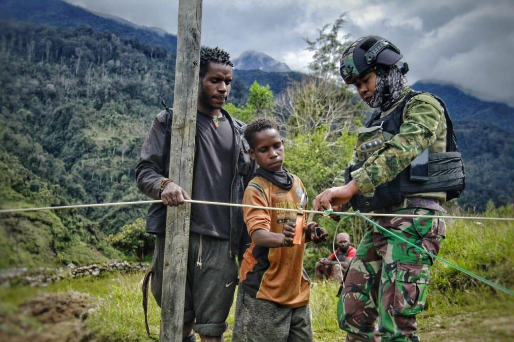 Dalam rangka membantu kesulitan rakyat disekitar, Satgas Yonif Raider 321/GT/13/1 Kostrad memberikan bantuan pemasangan instalasi listrik dan lampu di rumah Bapak Yones (59) warga Distrik Mbua, Kabupaten Nduga, Papua