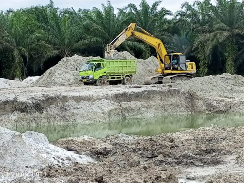 Dari sumber awak media yang tak mau disebut namanya mengatakan bahwa lokasi Galian C yang di Sei Berlian itu adalah lahan Hak Guna Usaha (HGU) PTPN V sehingga kelapa sawitnya di hancurkan.