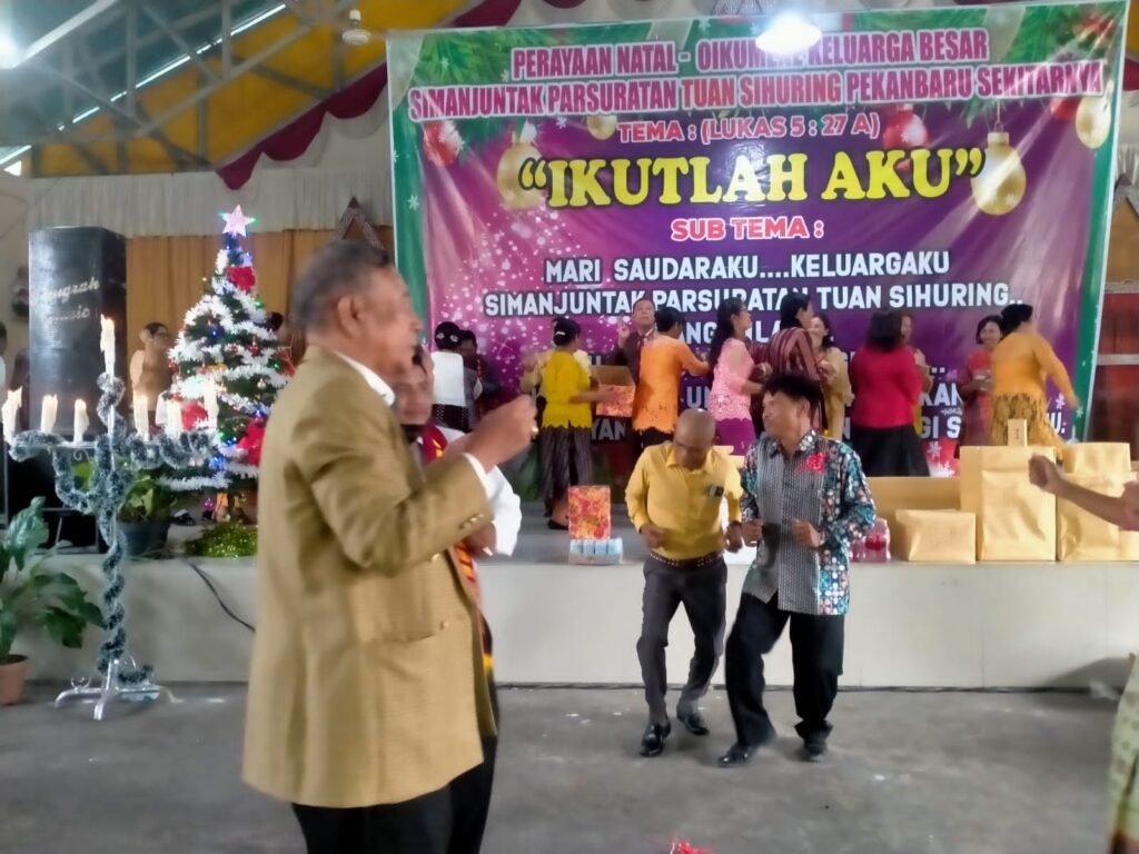 Perayaan Natal Oikumene Keluarga Besar Simanjuntak Parsuratan Tuan Sihuring Pekanbaru sekitarnya yang dilaksanakan pada hari Minggu di Gedung Aula Serba Guna jalan Rajawali Panam Pekanbaru dengan Tema : (LUKAS 5 : 27 A) ” Ikutlah Aku” dan Sub Tema “Mari saudaraku, keluargaku Simanjuntak Parsuratan Tuan Sihuring Bangunlah,Tuhan Yesus Memanggilmu, Ikutlah untuk menghasilkan Buah Imanmu yang Harum dan Manis BAGI SESAMAMU” . Minggu (4/12/22)