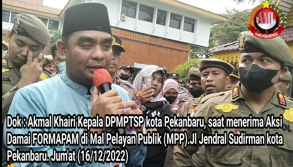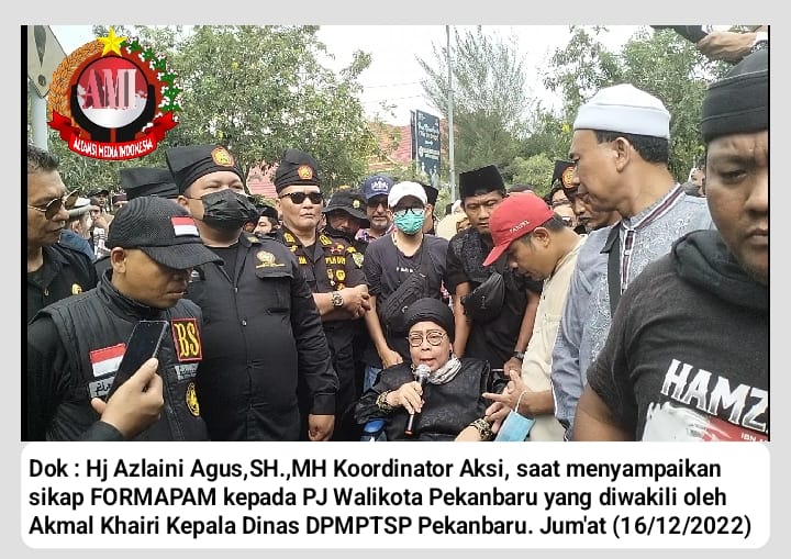 Masyarakat dan Elemen masyarakat, mengatasnamakan Forum Masyarakat Pekanbaru Anti Maksiat (FORMAPAM), lakukan aksi damai di depan kantor Mal Pelayanan Publik (MPP). Jum’at (16/12/2022)