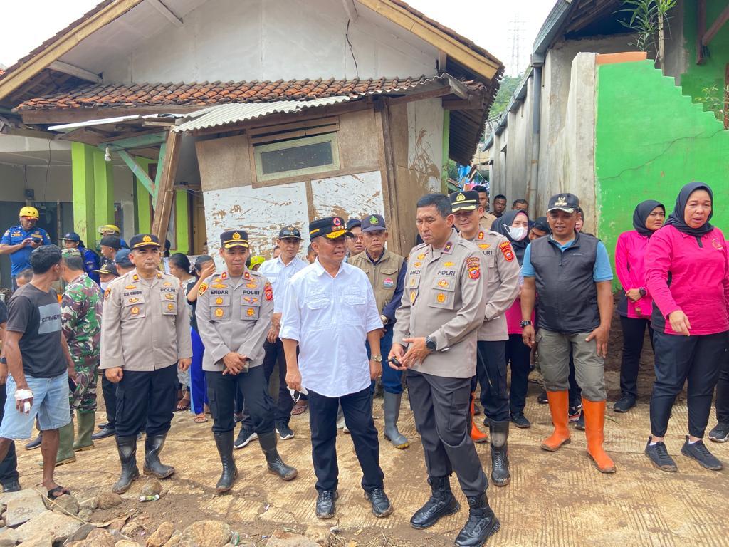 Wakapolda Jabar Brigjen Pol. Bariza Sulfi, S.I.K., melaksanakan peninjauan ke lokasi Banjir Bandang dan Longsor di Desa Sawahdadap, Cimanggung, Sumedang. Rabu (21/12/2022).