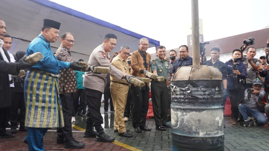 Proses pemusnahan dilakukan di halaman Markas Polda Riau, Kamis (22/12/2022). Kegiatan dipimpin langsung Kapolda Riau, Irjen Pol Mohammad Iqbal.