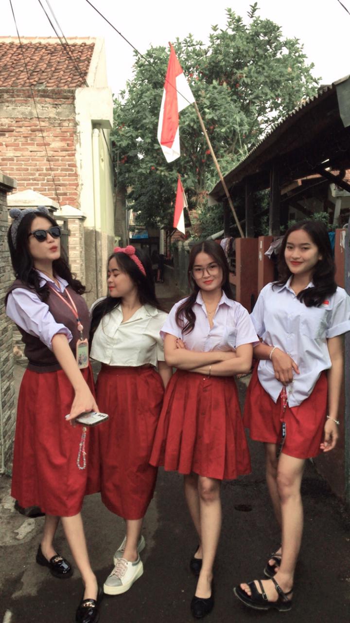 Berpenampilan anak SD 4 perempuan ikut memeriahkan HUT 17 Agustus yang ke-79 tahun
