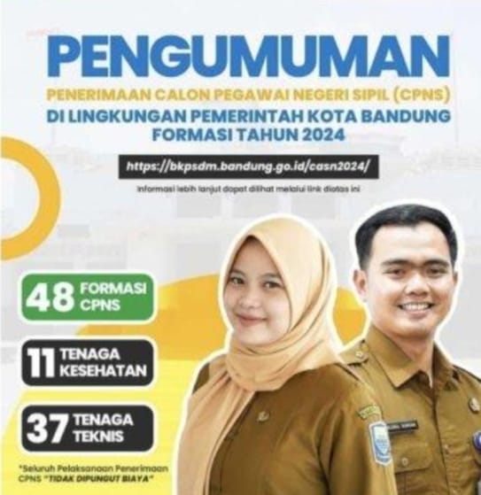Pemerintah Kota (Pemkot) Bandung telah membuka penerimaan Calon Pegawai Negeri Sipil(CPNS) untuk tahun ajaran 2024. Sebanyak 48 Formasi jabatan di tawarkan dalam seleksi ini kepada para pelamar terbaik.
