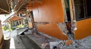 Salah satu sekola SMP Mts muhamadiyah Di terjang Gempabumi Mag 5.0 sampai ambruk beberapa bangunan kelas dan rumah warga tersebut, Kp. Neglasari Desa Cibereum Kab Bandung.