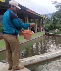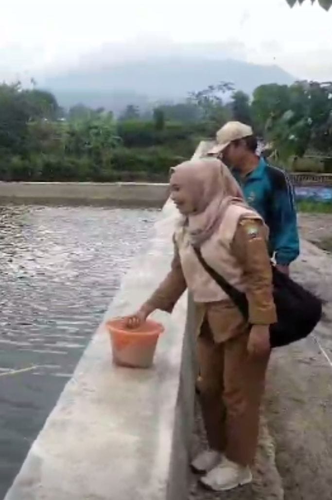 Sementara Kasie Pemdes Kecamatan Ganeas beserta jajaran telah mengunjungi lokasi budidaya ikan ke Desa Cikoneng Kulon sekaligus memberikan apresiasi dan dukungannya, Tampak Ibu Kasie Pemdes sedang menaburkan pakan ikan.
