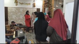 Ibu-ibu berlatih tarian daerah atau tarian kreasi baru untuk ditampilkan di depan umum.