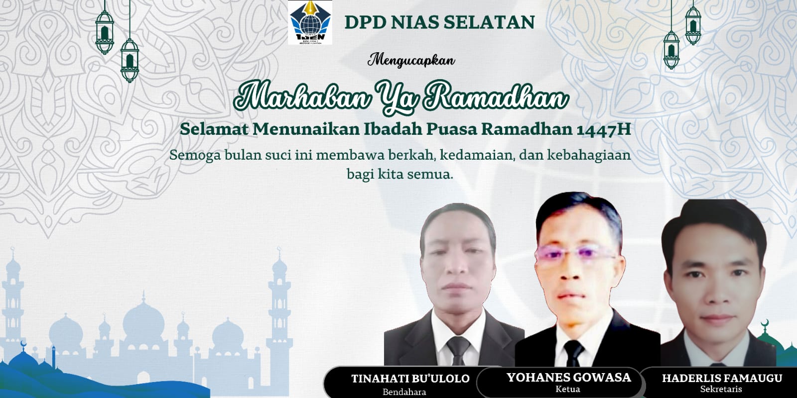 Menjelang datangnya bulan suci Ramadhan 1447 Hijriah, Dewan Pimpinan Daerah (DPD) Ijen kabupaten Nias Selatan, menyampaikan ucapan selamat menyambut bulan penuh berkah kepada seluruh umat Muslim, khususnya di wilayah Sumatera Utara.